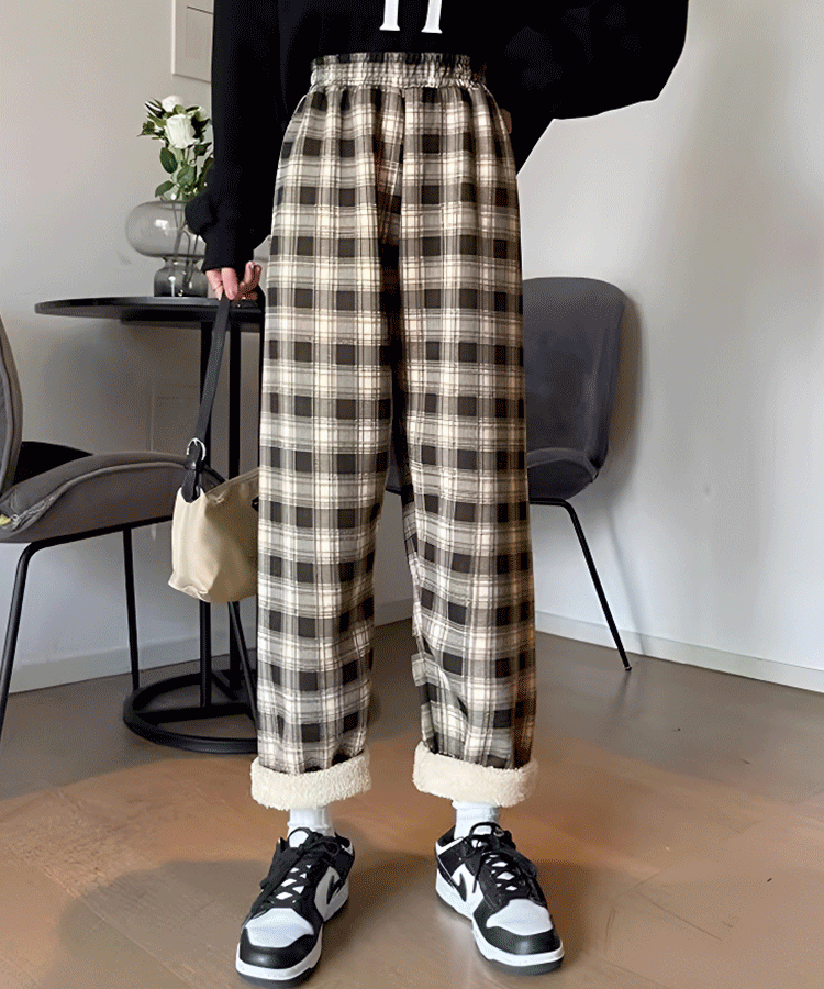 レディースシープボアチェック柄パンツ