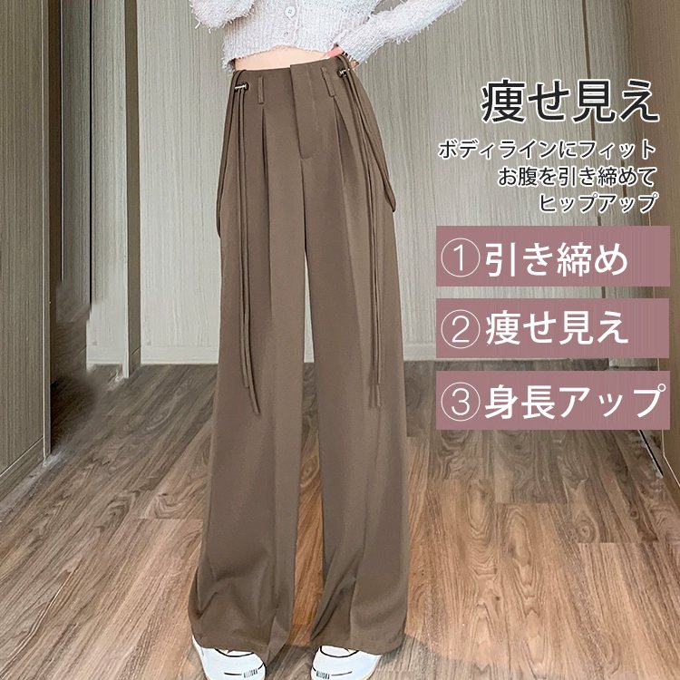 ハイウエストドローストリングワイドパンツ